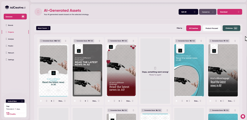 - generate ad creatives for multiple formats (stories, feeds, banners, etc.)