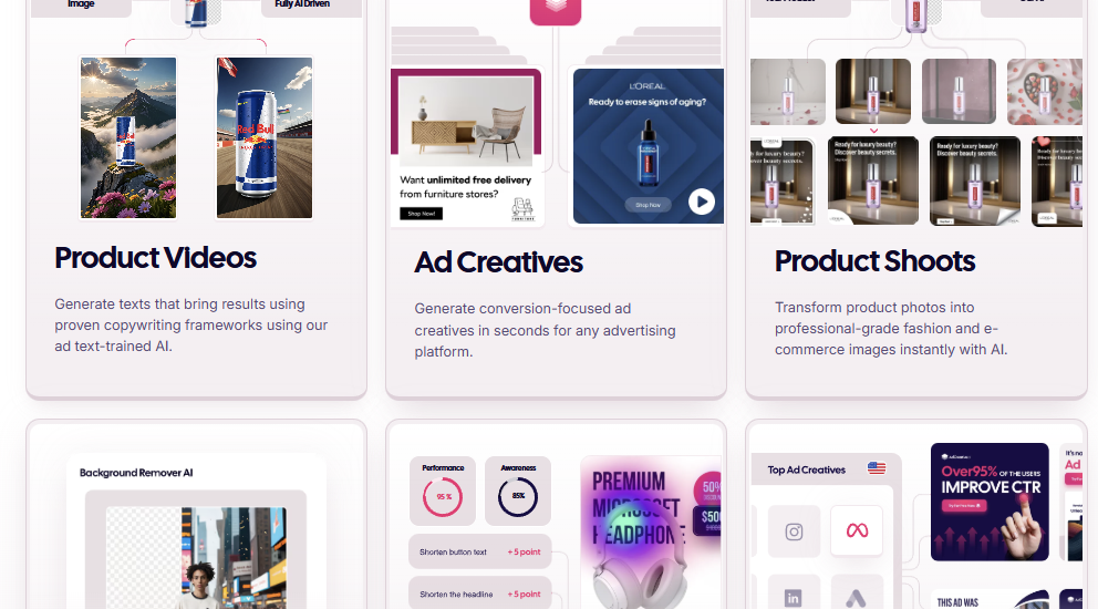 AdCreative.ai is not just a single-feature generator. It’s a broader AI-powered ad creation suite designed primarily for digital marketing teams and performance-driven campaigns.