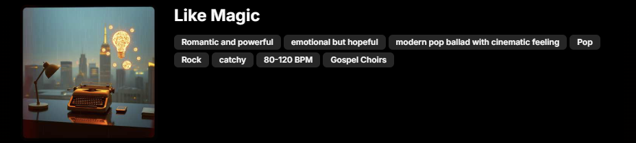 For this test, we focused on a realistic creative scenario: generating a song for the Like Magic AI newsletter using our own lyrics.