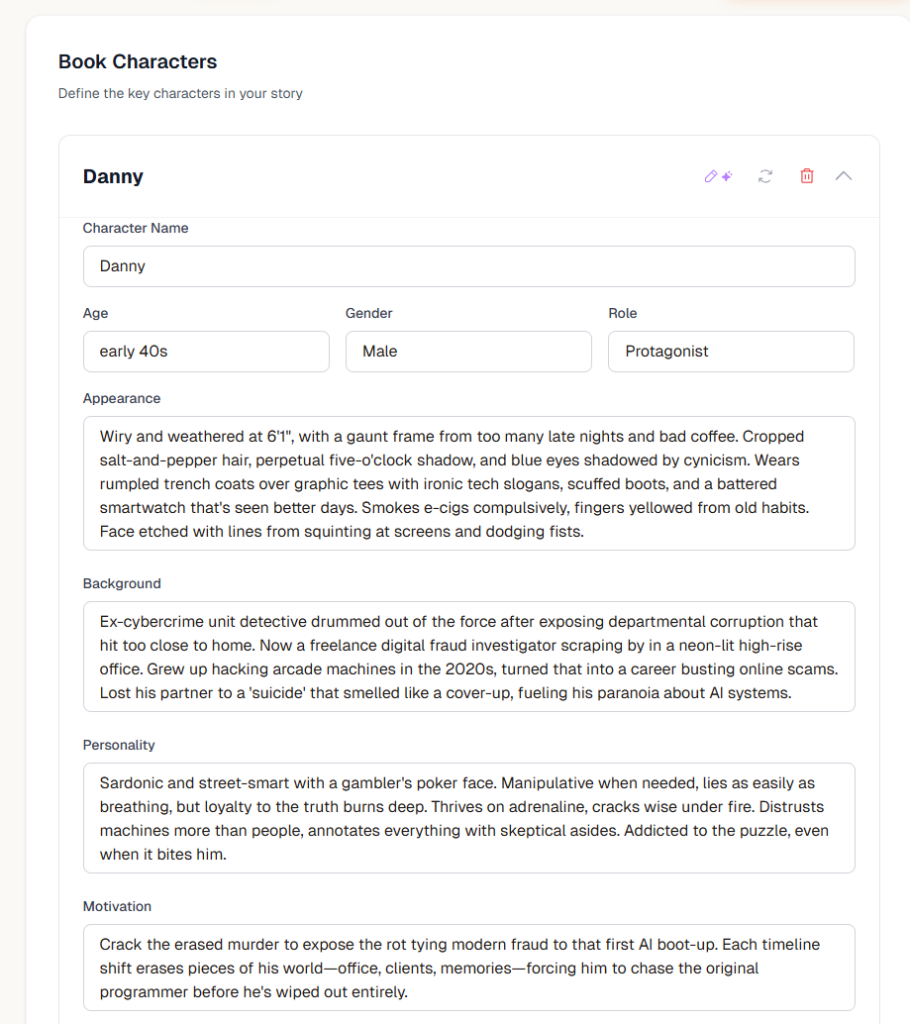 The AI took our instruction very literally. The result? A book where almost every sentence had four words. Sharp. Minimal. Almost poetic. But also unintentionally robotic over hundreds of pages.
