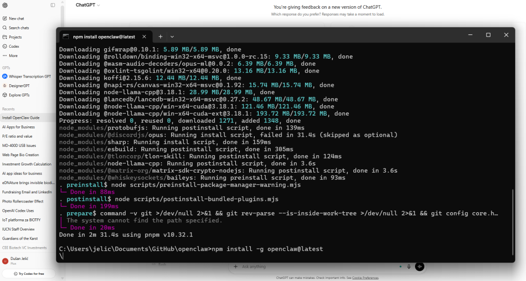 After some time spent troubleshooting—navigating between npm and pnpm conflicts, understanding how the project is structured, and realizing that the “obvious” way of installing it was not actually the recommended one—I eventually pivoted to the proper approach, which involved installing OpenClaw globally and running the onboarding process, a much smoother path but still one that assumes a certain level of comfort with terminals, environments, and system-level permissions, something that became especially apparent when the setup greeted me with a direct ⚠️ security warning explaining that this agent can read files and execute actions on the machine, essentially positioning it not as a harmless chatbot but as a tool with real operational power.